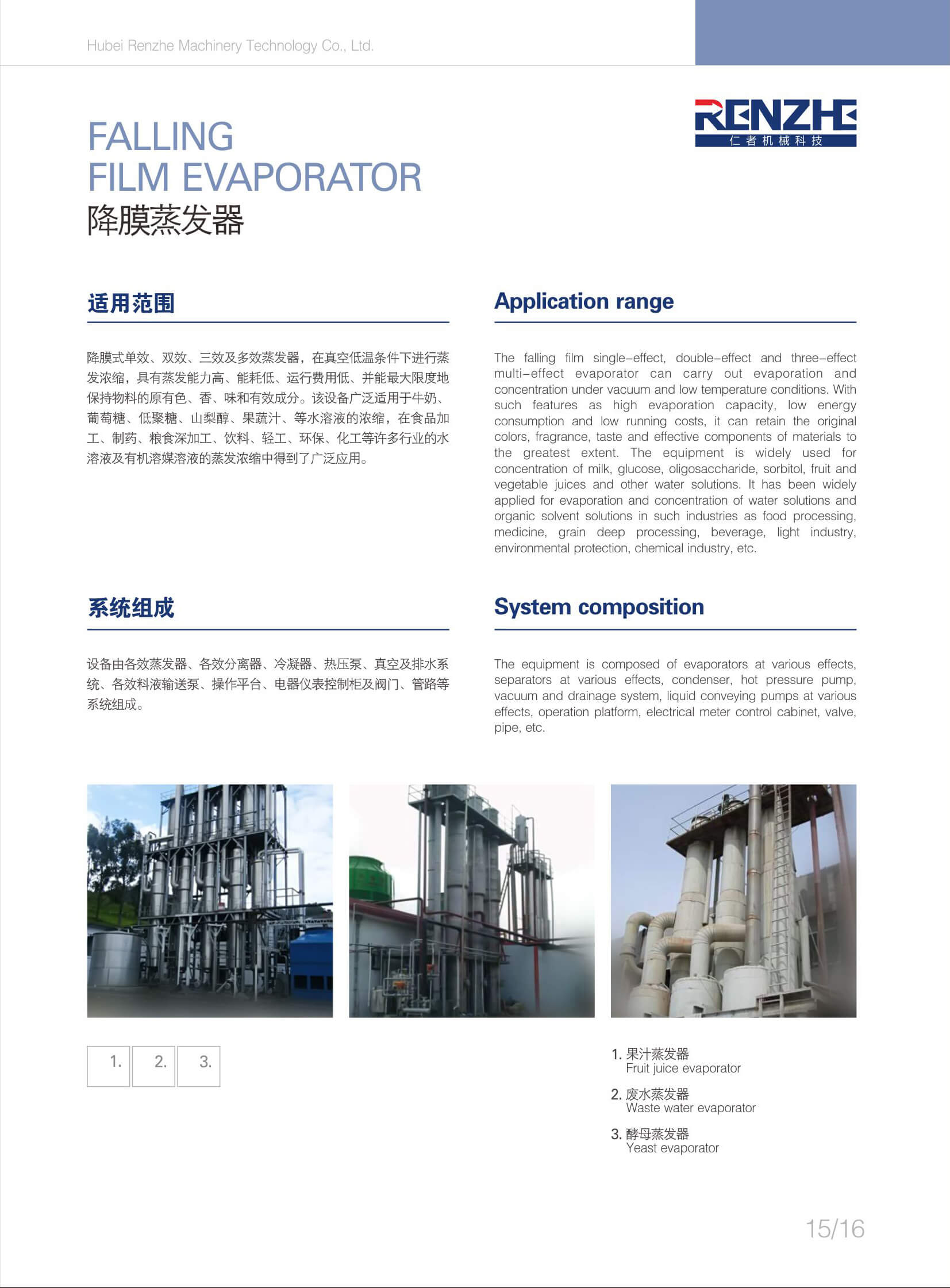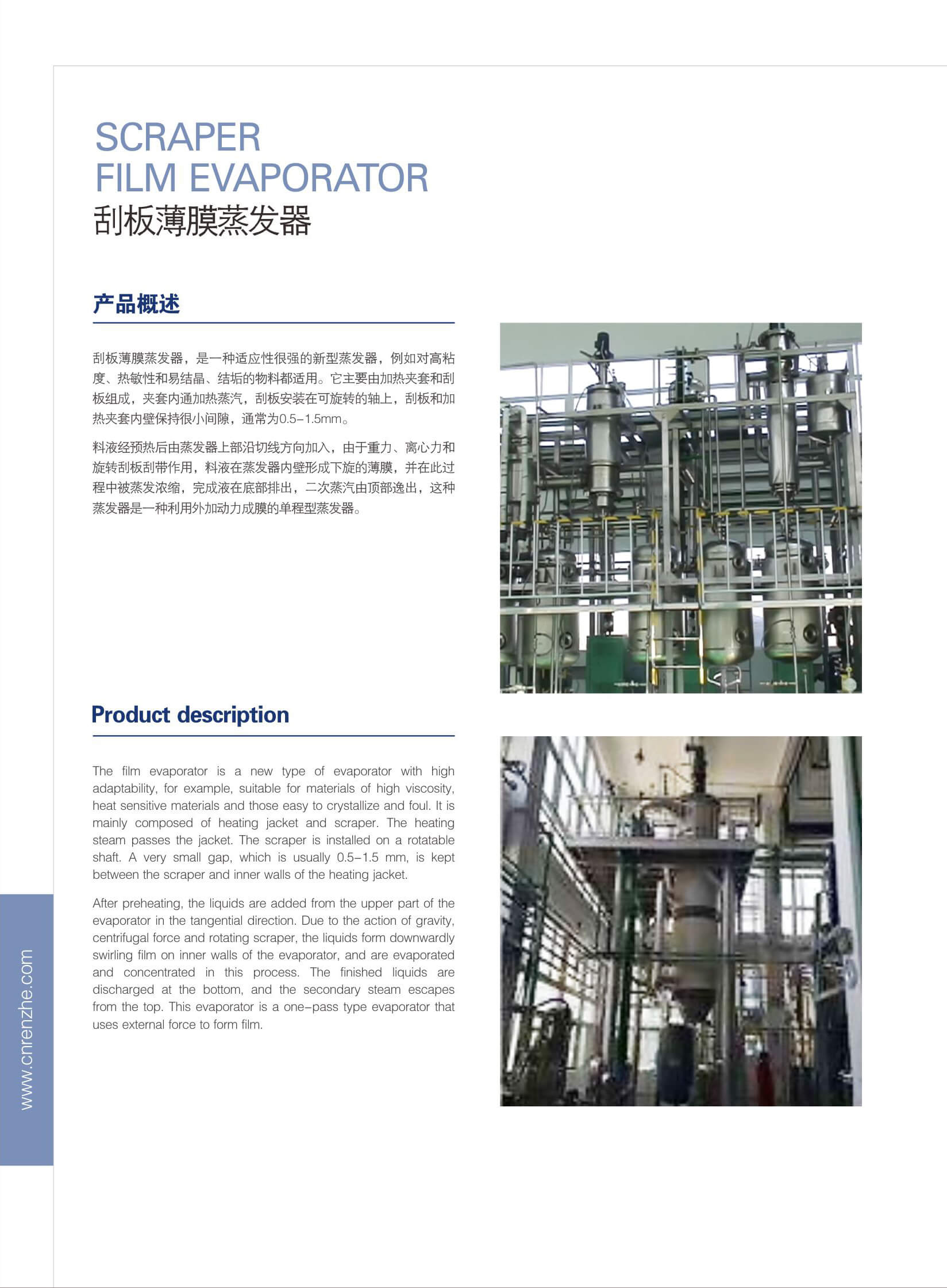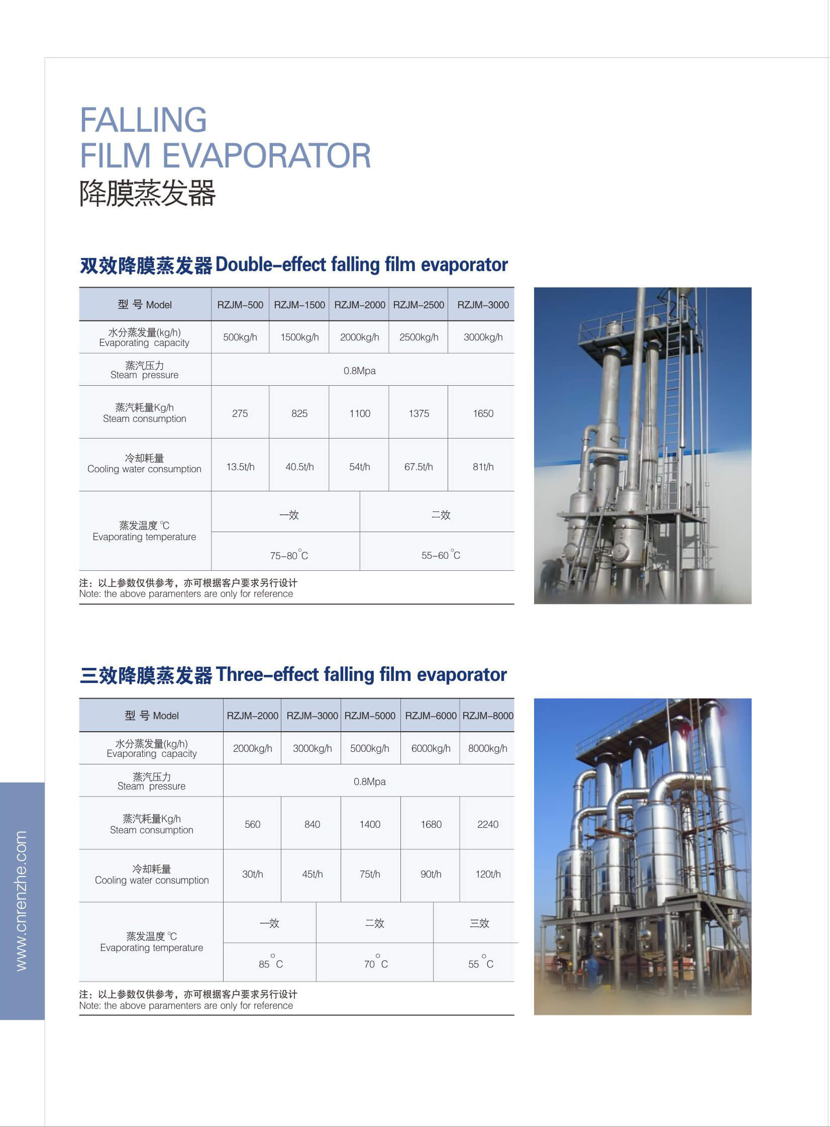 蒸發(fā)設(shè)備廣泛應(yīng)用于化工、醫(yī)藥和食品發(fā)酵等工業(yè)行業(yè)。蒸發(fā)器種類繁多,其分類方法也多種多樣。按使用目的分,有蒸發(fā) 濃縮型和蒸發(fā)結(jié)晶型;按加熱部分結(jié)構(gòu)分,有夾套式、列管式、長管式和短管式、垂直管式和水平管式;按能源利用方式分 ,有單效、多效、二次蒸汽壓縮式、多級閃蒸式;按物料流動方式分,又可分為升膜式、降膜式、升降膜式等。盡管分類方 法各異,但其共同特點都一樣,就是將熱量傳遞給物料使溶液蒸發(fā)。