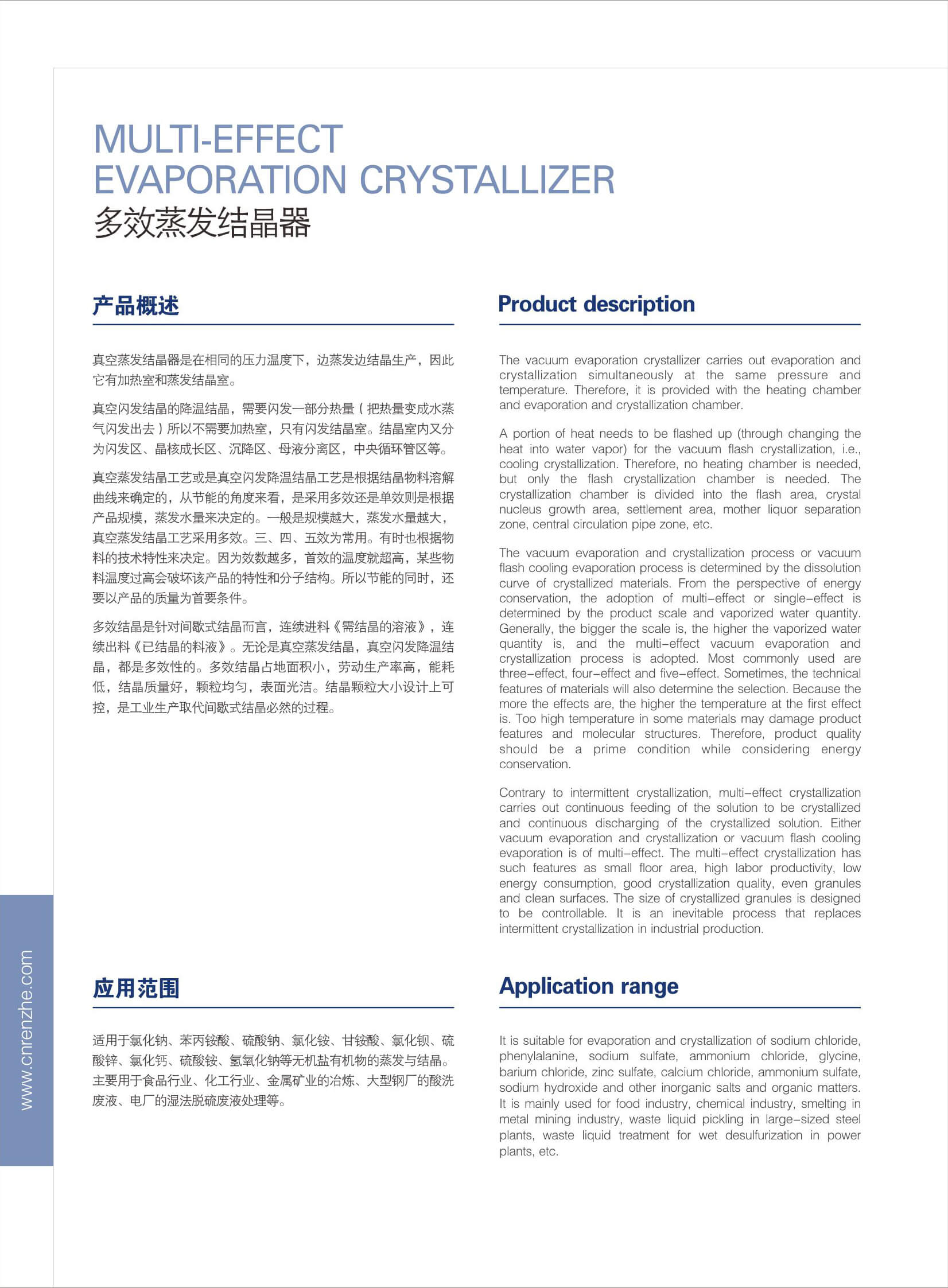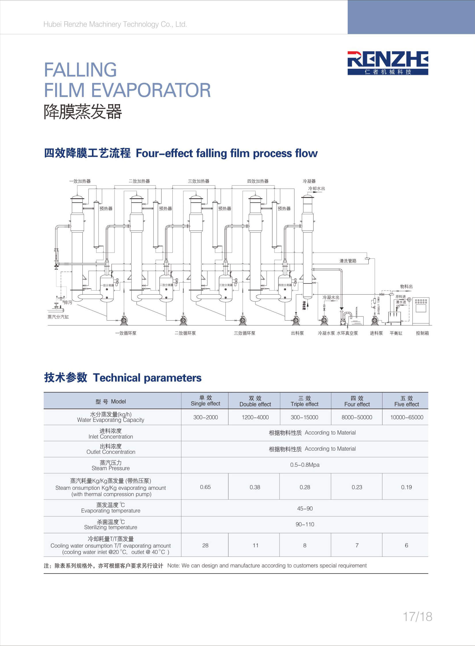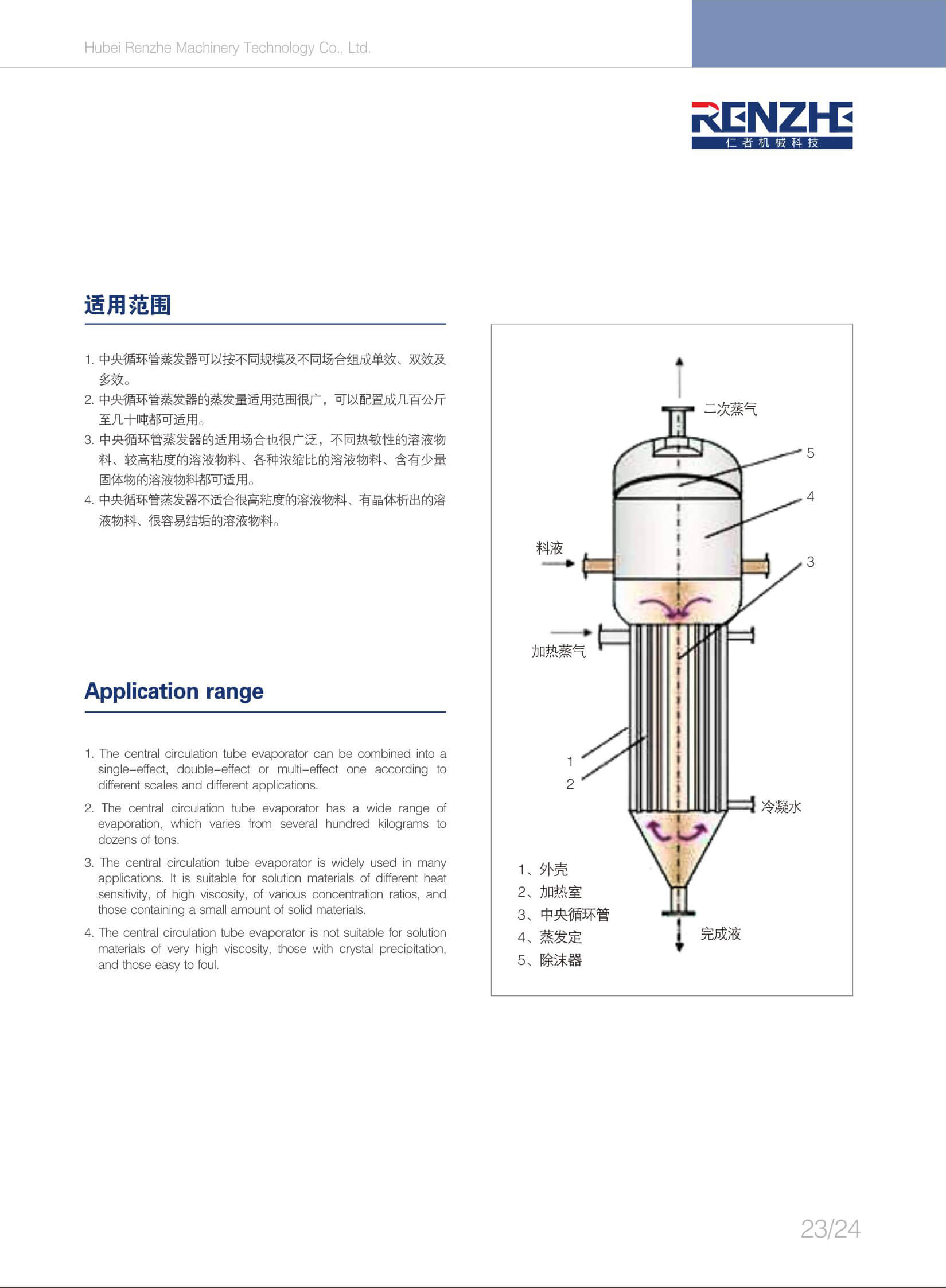 蒸發(fā)設(shè)備廣泛應(yīng)用于化工、醫(yī)藥和食品發(fā)酵等工業(yè)行業(yè)。蒸發(fā)器種類繁多,其分類方法也多種多樣。按使用目的分,有蒸發(fā) 濃縮型和蒸發(fā)結(jié)晶型;按加熱部分結(jié)構(gòu)分,有夾套式、列管式、長管式和短管式、垂直管式和水平管式;按能源利用方式分 ,有單效、多效、二次蒸汽壓縮式、多級閃蒸式;按物料流動方式分,又可分為升膜式、降膜式、升降膜式等。盡管分類方 法各異,但其共同特點都一樣,就是將熱量傳遞給物料使溶液蒸發(fā)。