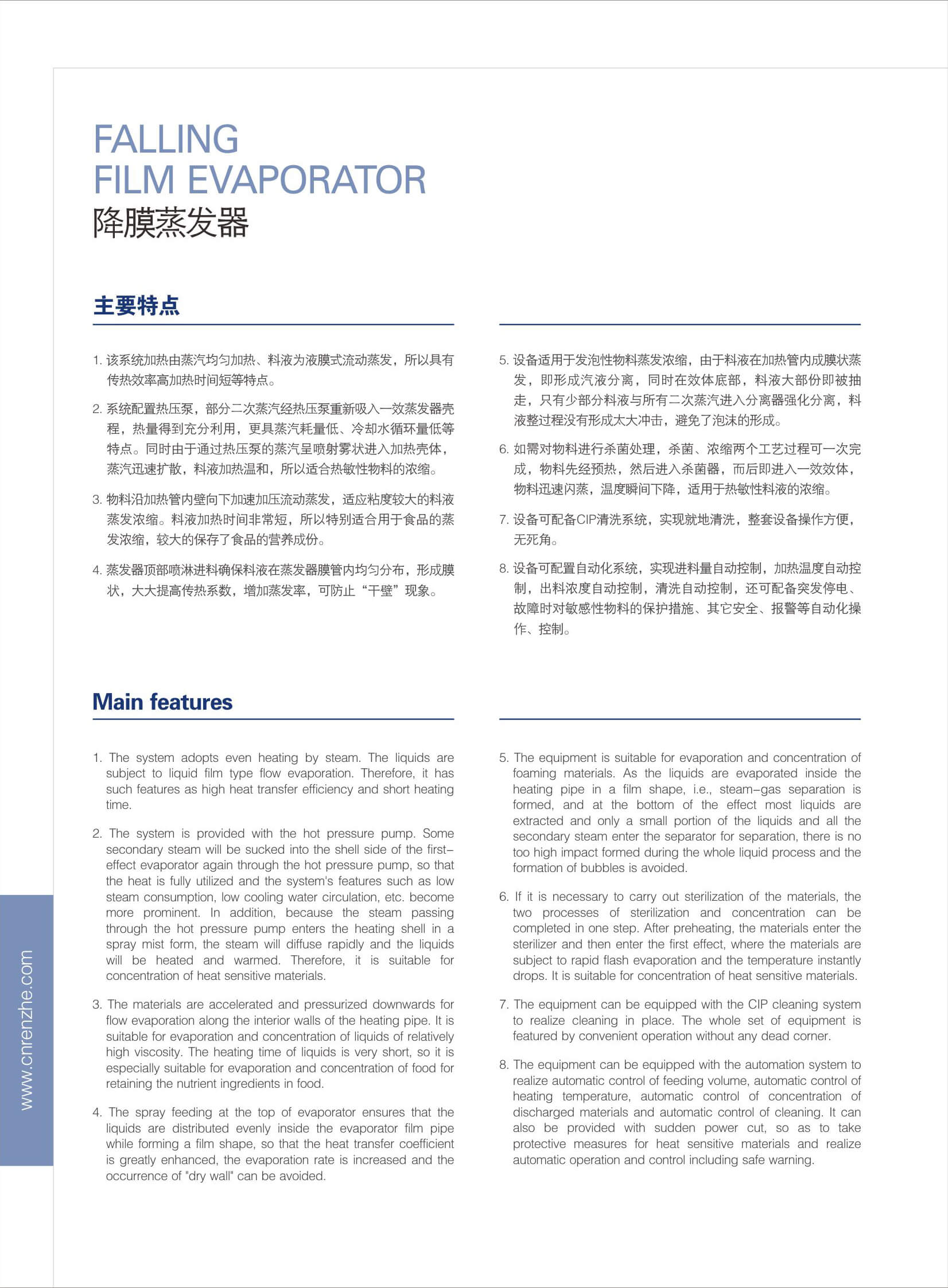 近年以來,隨著食品工業(yè)的迅猛發(fā)展,能源價格的不斷攀升,環(huán)保要求的越來越嚴格,傳統(tǒng)蒸發(fā)器越來越不適應(yīng)節(jié)能環(huán)保的要求,新工藝、新技術(shù)如雨后春筍,不斷被應(yīng)用于生產(chǎn)之中。仁者機械研制的新型MVR節(jié)能蒸發(fā)系統(tǒng),它只利用少量電能,即可實現(xiàn)原料的蒸發(fā)濃縮或固水分離,還可實現(xiàn)出水的達標排 放。MVR設(shè)備具有溫差小的特點,這對保持原料的性質(zhì)不變非常有利。
