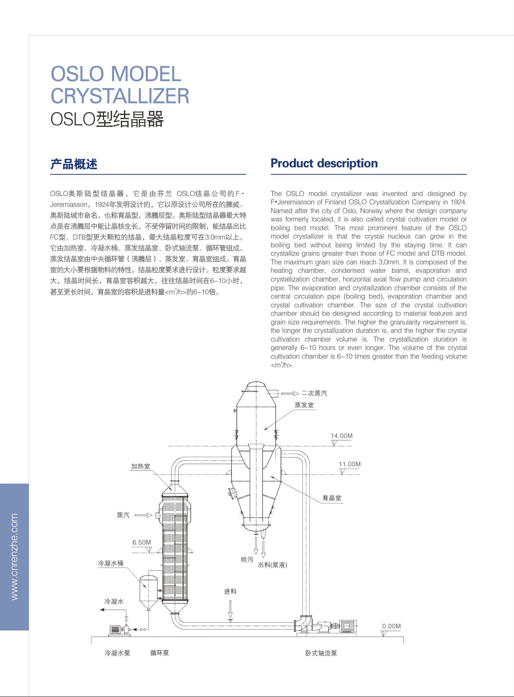 原理是利用高能效蒸汽壓縮機壓縮蒸發(fā)產(chǎn)生的二次蒸汽,把電能轉(zhuǎn)換成熱能,提高二次蒸汽的焓,被提高熱能的二次蒸汽打入蒸發(fā)室進行加熱,以達到循環(huán)利用二次蒸汽已有的熱能,從而可以不需要外部鮮蒸汽,依靠蒸發(fā)器自循環(huán)來實現(xiàn)蒸發(fā)濃縮的目的。當MVR蒸發(fā)處理的飽和濃縮液滿足一定的條件時(飽和度、粘稠度等),PLC控制系統(tǒng)將向固液分離器發(fā)出指令,閥門自動打開,濃縮液流入結(jié)晶器內(nèi)。飽和濃縮液經(jīng)結(jié)晶器處理,析出固體,實現(xiàn)固體與液體的分離。最終,通過循環(huán)使用經(jīng)壓縮、升溫、升壓的二次蒸汽,實現(xiàn)對制藥工業(yè)廢水中有用物質(zhì)的回收利用和制藥工業(yè)廢水的“零排放”。